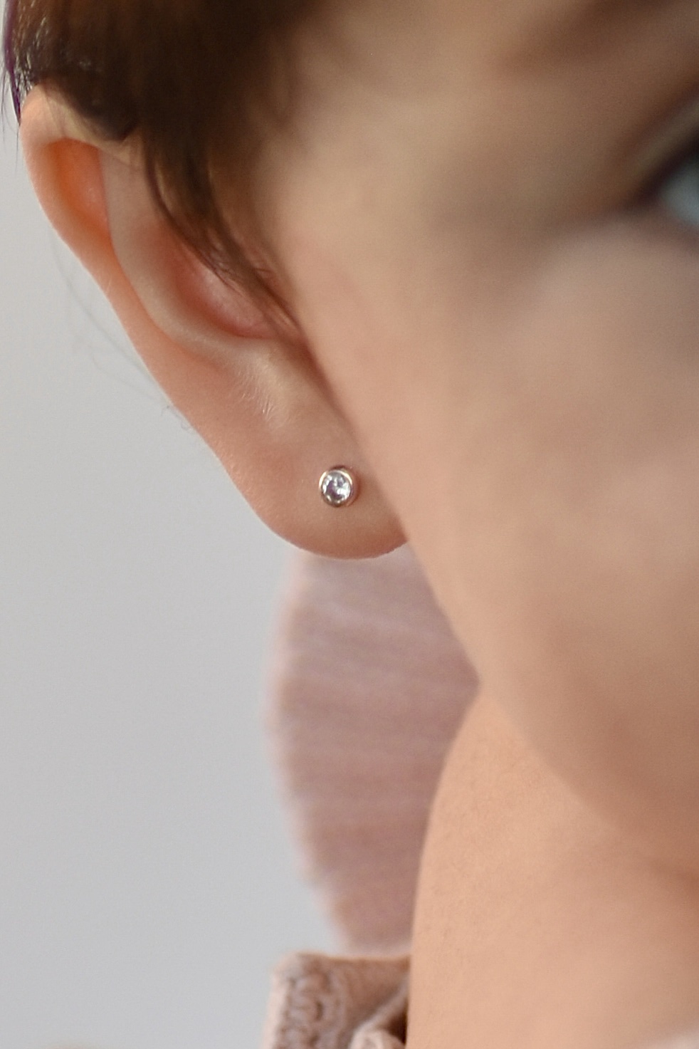 Aretes de Oro 14K con punta para perforar y bolita de seguridad.